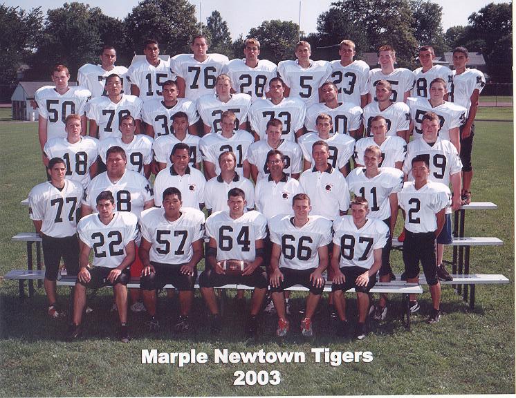 Marple Newtown has fielded a varsity football team since 1927. Coach Harry Harvey led the program from its inception to 1949. The Tigers have won over 300 games, including Suburban League titles in 1962 and 1977.